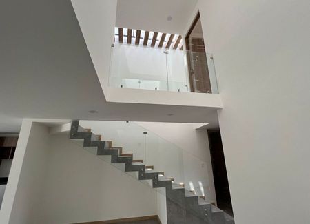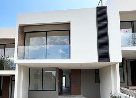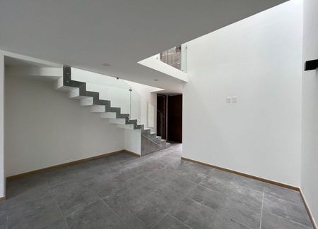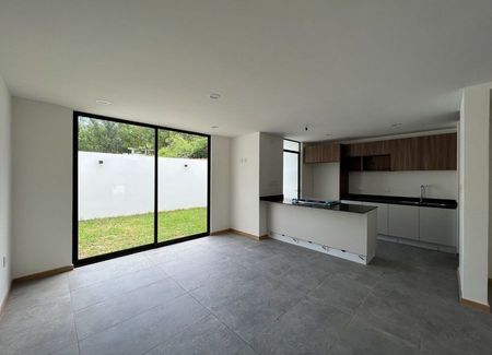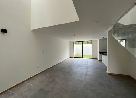 Planta baja: estudio, sala, comedor, cocina de concepto abierto con alacena, medio baño, cuarto de lavado, amplio jardín y cochera para 2 autos. Planta alta: 3 recámaras cada una con baño completo, la principal con vestidor.
